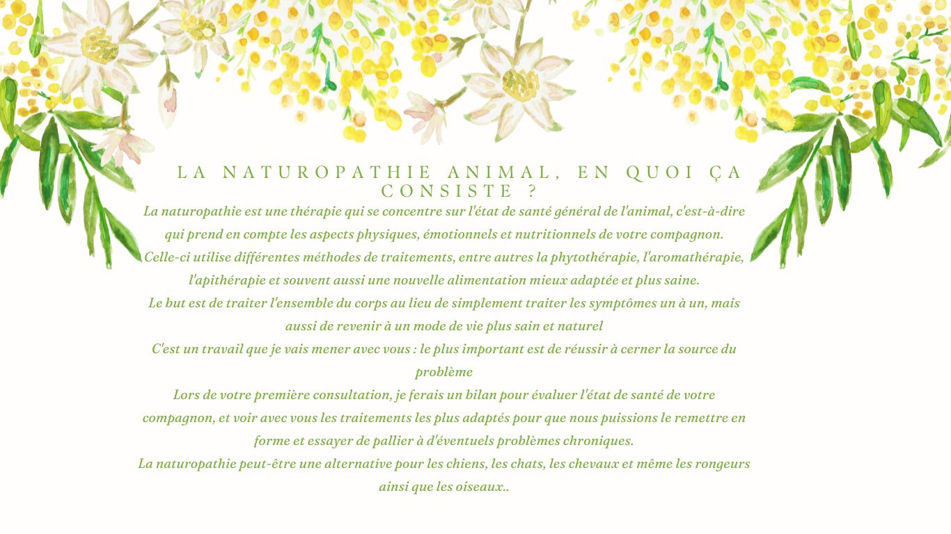 Complémentarité avec la médecine vétérinaire: La naturopathie peut être utilisée en complément des traitements vétérinaires conventionnels pour améliorer le bien-être général de l'animal.